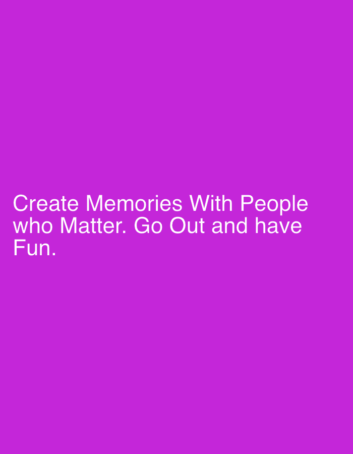 The image is a solid purple background with white text that reads, "Create Memories With People who Matter