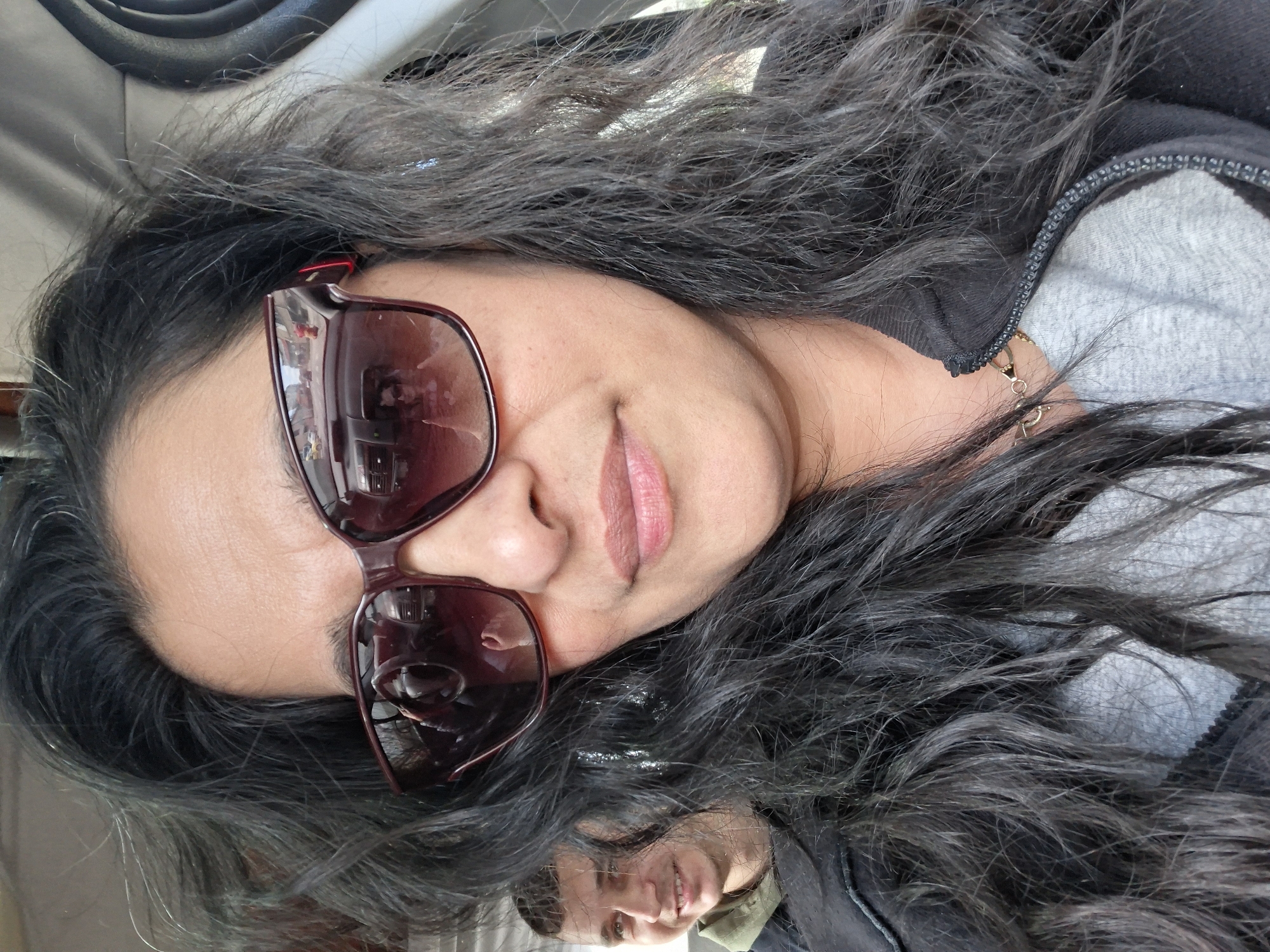 - "The image depicts a woman wearing sunglasses, with long dark hair, inside what appears to be a car" by FM-vjqkD2, licensed under CC BY 4.0