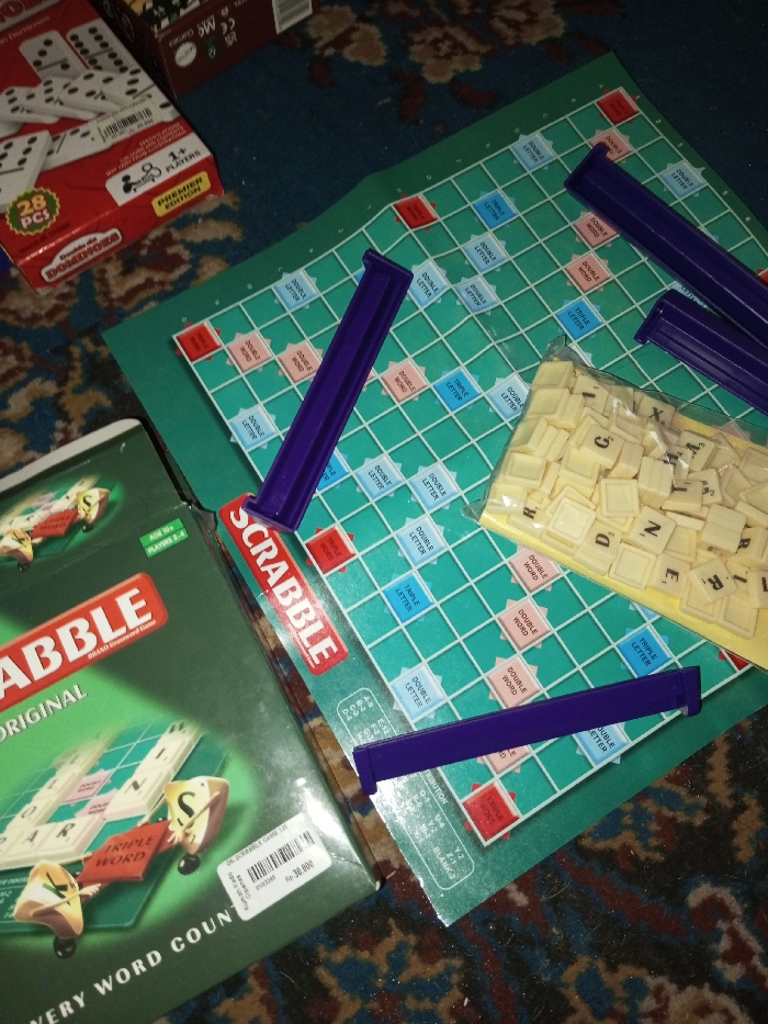 - "The image showcases a Scrabble board game laid out on a patterned surface" by FM-Rb2su2, licensed under CC BY 4.0