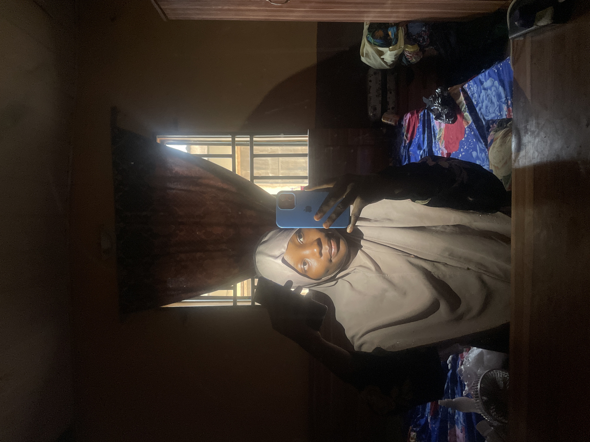 The image depicts an indoor scene in Gwagwalada, Nigeria, captured as a mirror selfie