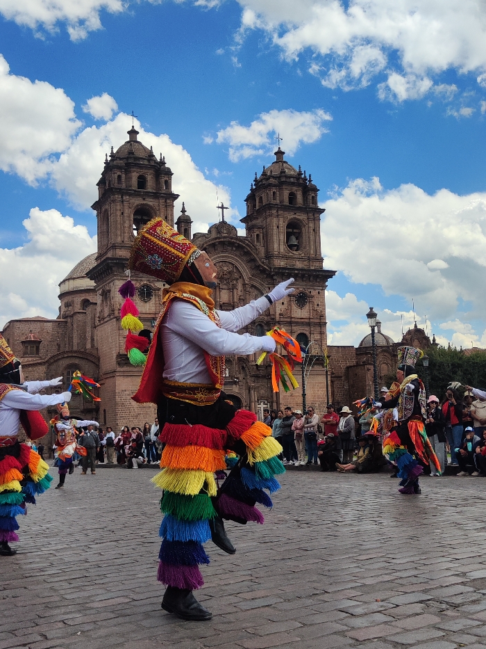 - "Dancers in traditional Andean costumes perform in a plaza" by FM-20kwN2, licensed under CC BY 4.0