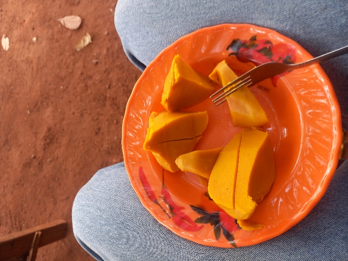 - "A first-person, overhead view captures a person's lap, covered in blue jeans, holding an orange plastic plate in Oturkpo, Nigeria" by FM-dSFJt1, licensed under CC BY 4.0