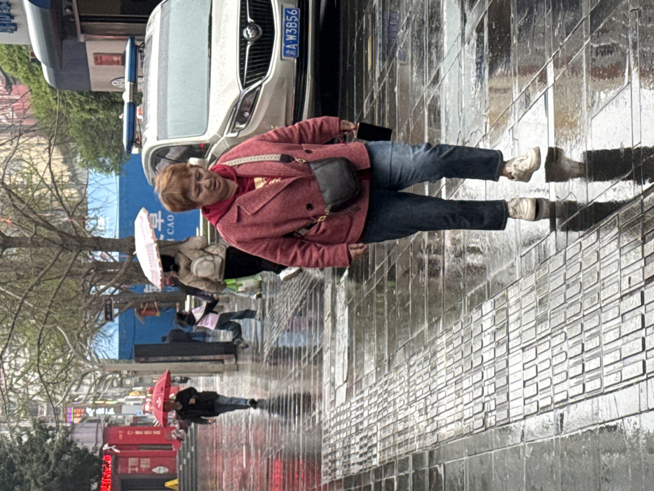 This image depicts a rainy day scene on a city street in Jiangjin, China