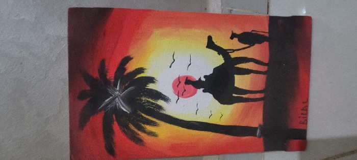 - "The image displays a vertically oriented hand-painted artwork, likely an acrylic or oil painting on canvas, with the name "BILAL" signed in red in the bottom-left corner" by FM-dHZ8d2, licensed under CC BY 4.0