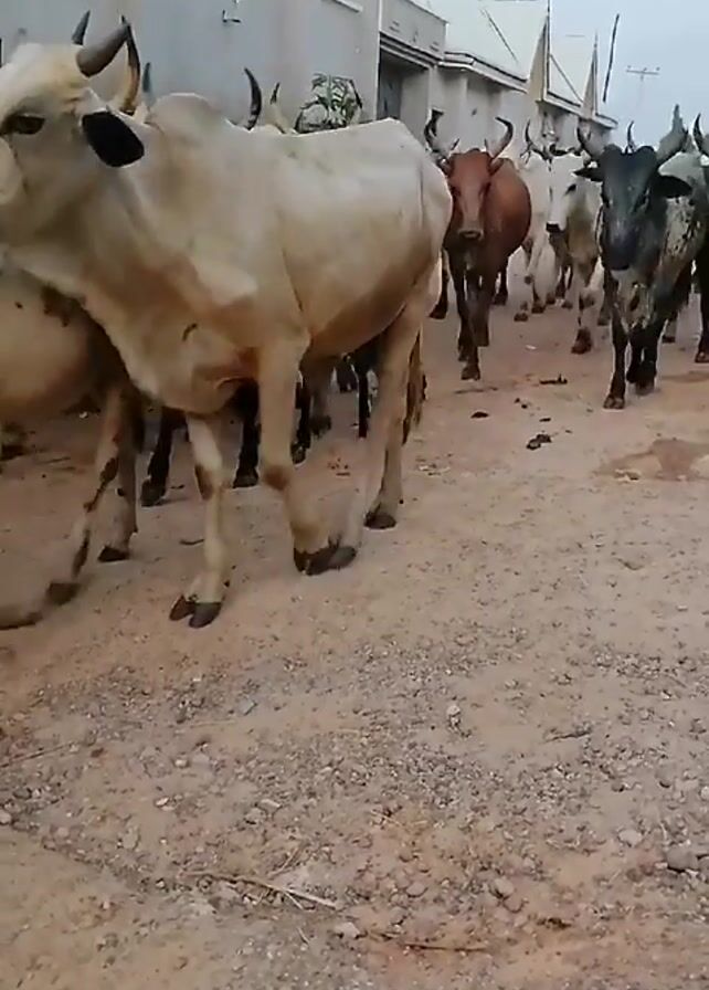 - "A herd of cattle is walking along a dirt road in a residential area" by FM-mhExG3, licensed under CC BY 4.0
