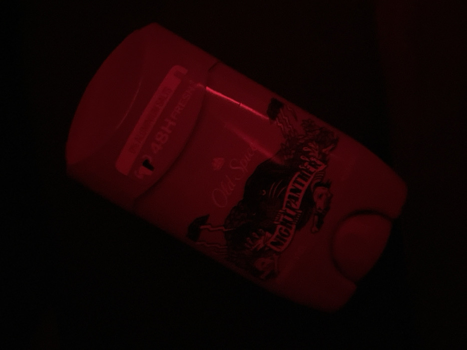 - "A red-toned image shows a container of Old Spice Night Panther deodorant" by FM-6Nz403, licensed under CC BY 4.0