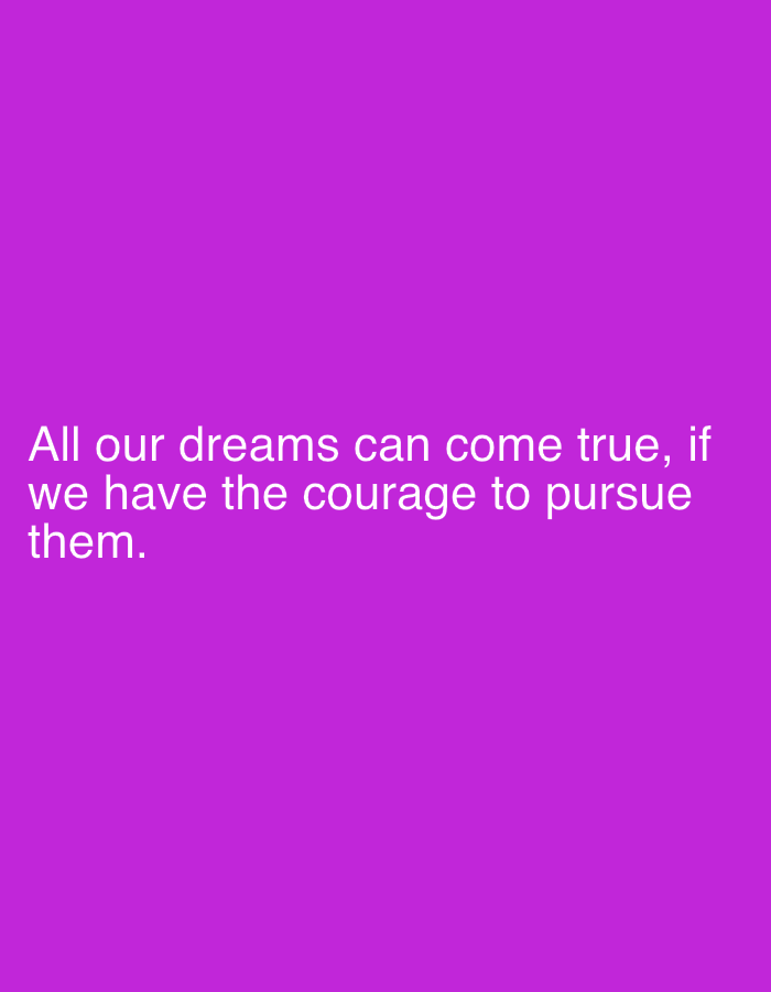 The image displays white, sans-serif text centered horizontally and positioned in the lower half of a solid magenta background. The text reads: "All our dreams can come true, if we have the courage to pursue them." It is arranged over three lines. The background is uniformly colored without any patterns, textures, or other visual elements. No people, physical objects, actions, or interactions are present. The scene is purely textual on a colored field, with no discernible geographic location, including the city of Salzburg, Austria, depicted or implied.