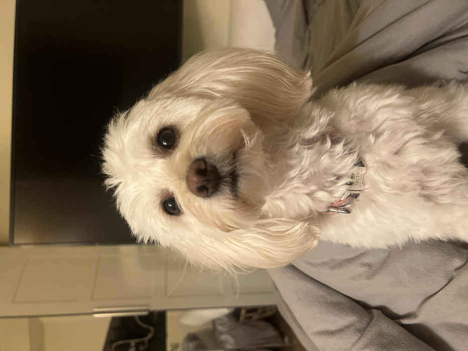 - "A small domestic canine, consistent with a Maltese or similar toy breed, is captured in a head-and-shoulders portrait shot" by FM-NG8bn2, licensed under CC BY 4.0