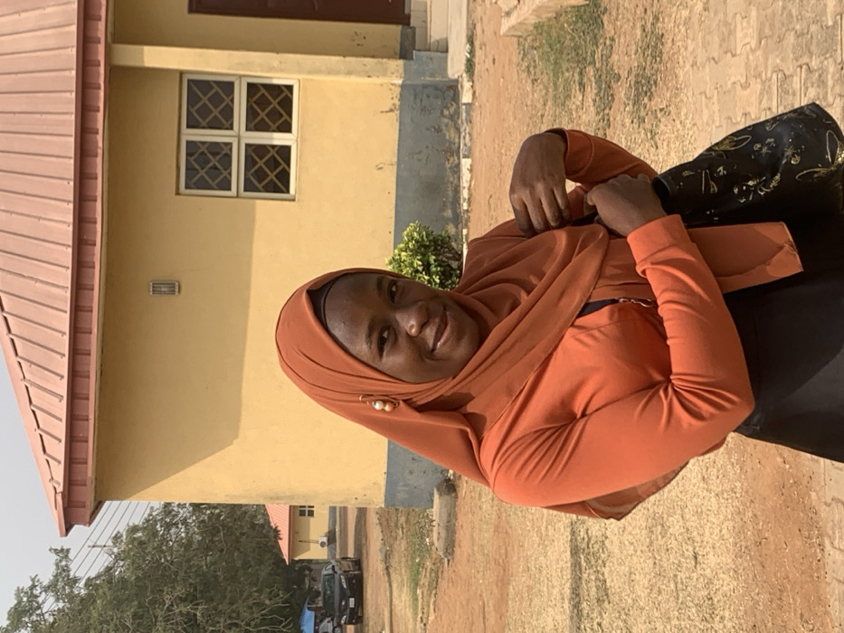 A young adult female is depicted standing outdoors in Oko Erin, Nigeria, facing the camera with a smile