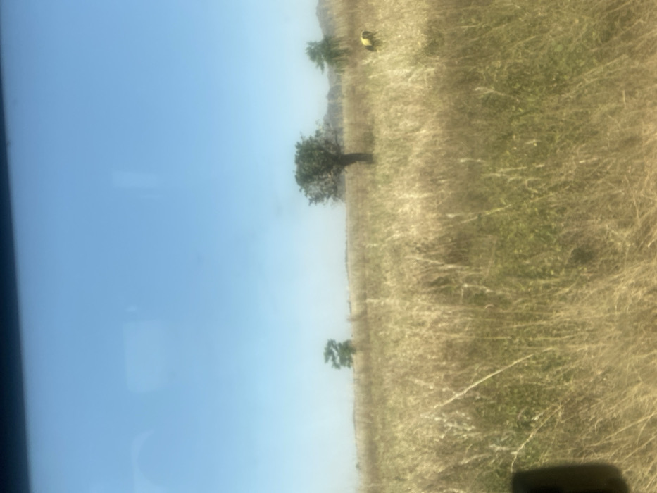 - "The image depicts an expansive, dry grassland environment under a clear, light blue sky, likely viewed from inside a moving vehicle given the reflections in the upper frame and a dark object in the lower-left foreground consistent with a vehicle component" by FM-3S4492, licensed under CC BY 4.0