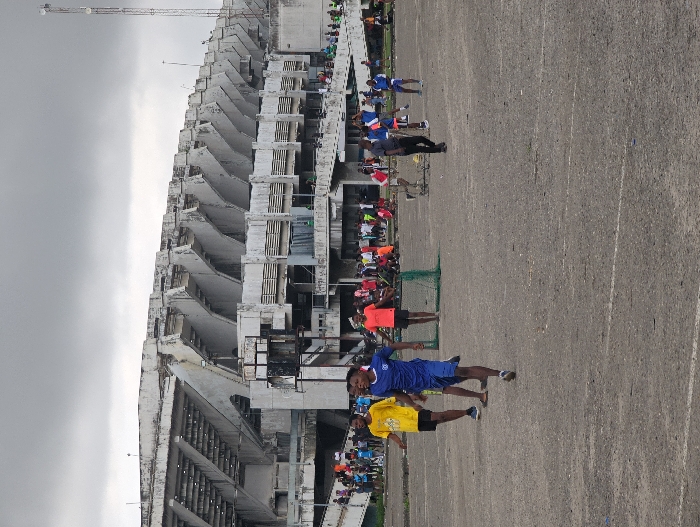 The image depicts an outdoor scene at the National Stadium, located in Surulere, Lagos, Nigeria