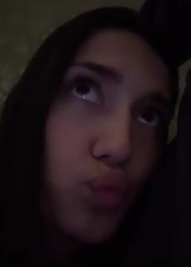 A close-up video shows a young woman's face in dim lighting