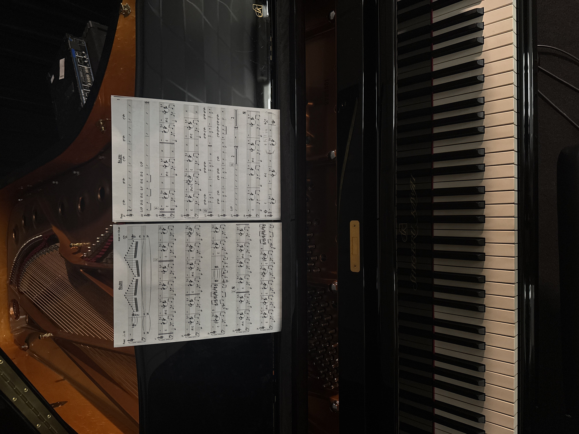 Shigeru Kawai grand piano with sheet music titled "Bolero" placed on the music stand