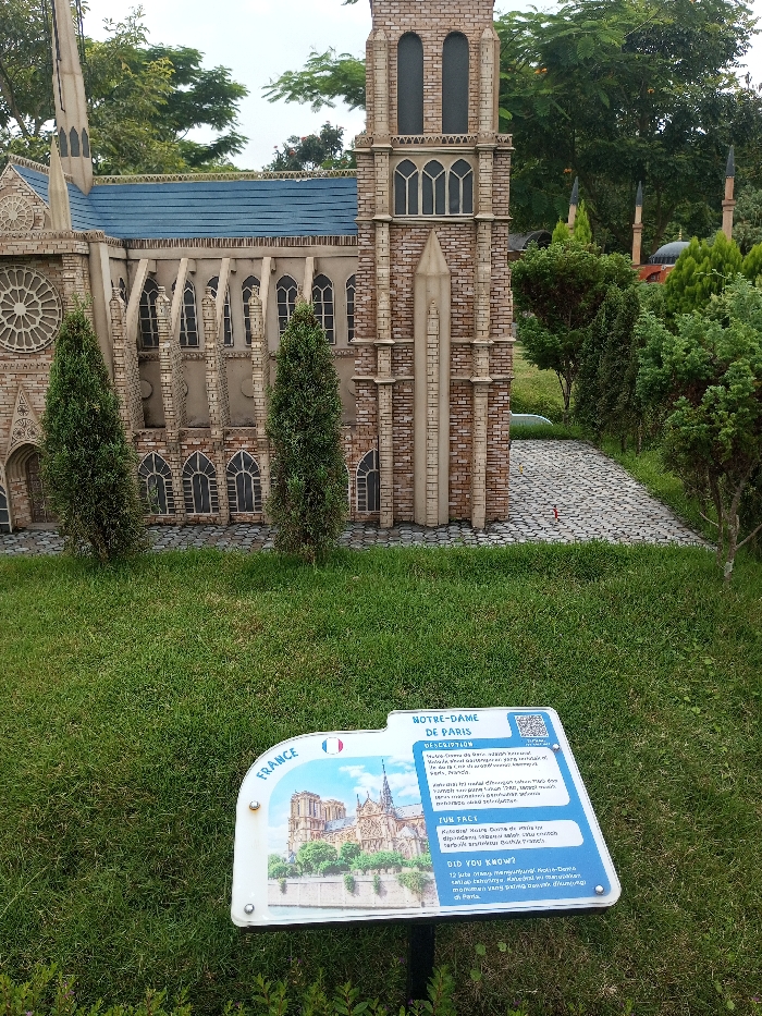 - "This image depicts an outdoor exhibit in Ciherang, Indonesia, featuring a detailed scale model of Notre-Dame de Paris" by FM-OkGy82, licensed under CC BY 4.0