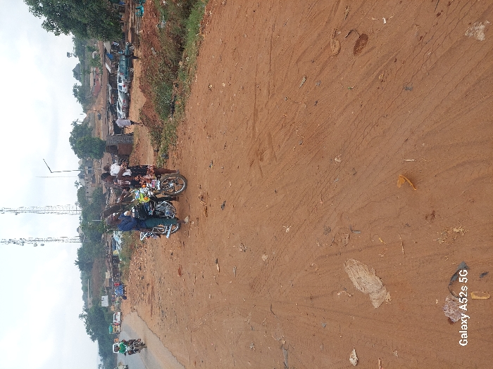 The image depicts a roadside scene in Awkuzu, Nigeria, under an overcast sky