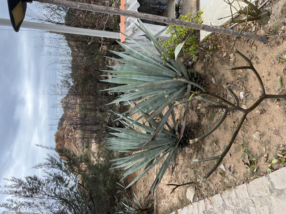 - "A scene shows two large agave plants with long, spiky leaves dominating the foreground, near a toppled tree branch" by FM-gZMgt2, licensed under CC BY 4.0