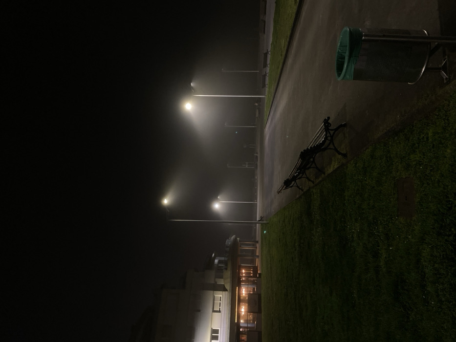 - "The image displays an empty urban promenade at night, enveloped in dense fog, indicative of the San Lorenzo Beach promenade in Gijón/Xixón, Spain" by FM-whkRu1, licensed under CC BY 4.0