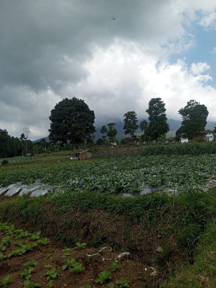 - "The image depicts an expansive agricultural landscape in Bagochen Boolingpang Ueling, Bhutan, under a predominantly overcast sky with dense, dark grey clouds across the upper left and center, transitioning to lighter grey and patches of blue in the upper right" by FM-9wSr13, licensed under CC BY 4.0