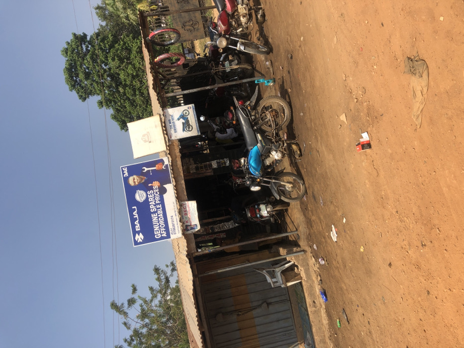 - "The scene depicts a motorcycle repair workshop or spare parts store situated on an unpaved, reddish-brown dirt roadside in the city of Oshogbo, Nigeria" by FM-nzRdr1, licensed under CC BY 4.0
