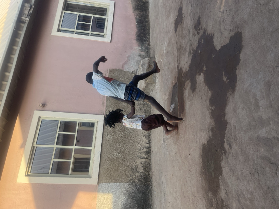 - "The image displays two barefoot children engaged in an outdoor activity on a concrete surface, likely within a residential area of Lafia, Nigeria" by FM-m0Zda2, licensed under CC BY 4.0