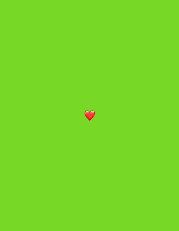 A red heart emoji is centered on a bright green background