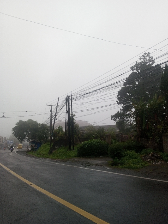 This image depicts a wet, overcast roadside scene in Babaliya Mal