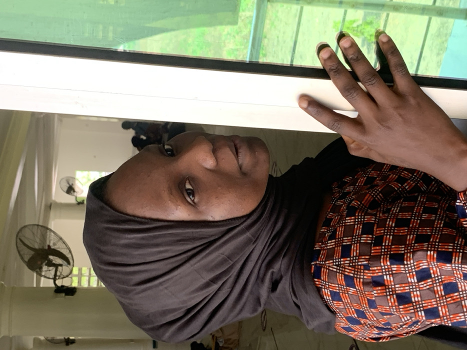 The image displays a woman situated indoors within a building in the city of Badi, Nigeria