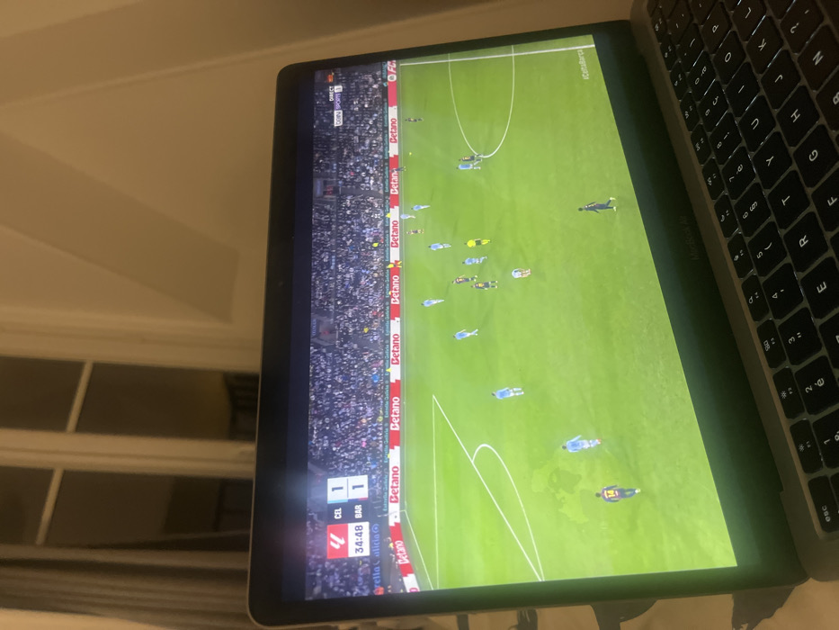 - "A silver/gray MacBook Air laptop displays a live football match between Celta (CEL) and Barcelona (BAR), with the score tied at 1-1 at 34 minutes and 48 seconds" by FM-VkZGB2, licensed under CC BY 4.0