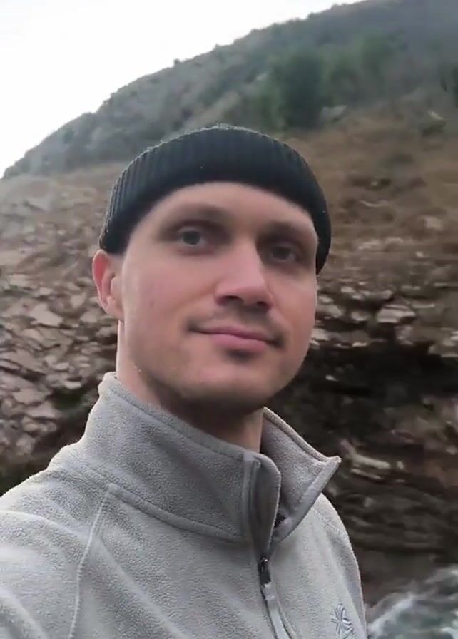 - "A man wearing a black beanie and grey fleece jacket stands near a rocky cliff overlooking a flowing river" by FM-7d2Rp2, licensed under CC BY 4.0