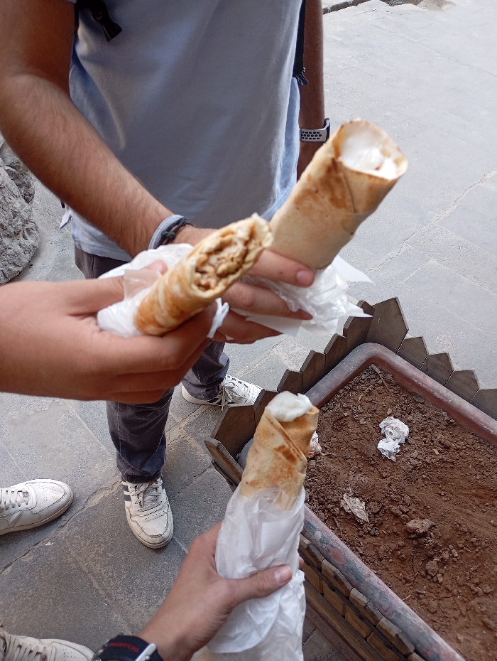 - "An outdoor scene in Damascus, Syria, depicts three individuals interacting with food" by FM-uNgLB2, licensed under CC BY 4.0