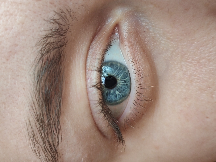 A high-resolution, close-up photograph displays the left human eye