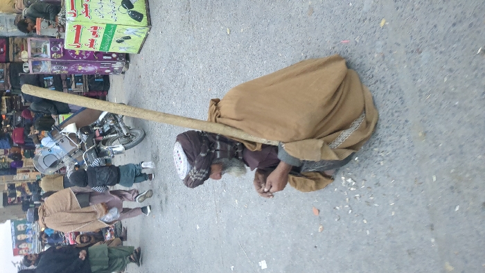 The image captures a bustling street market scene in Quetta City Tehsil, Pakistan