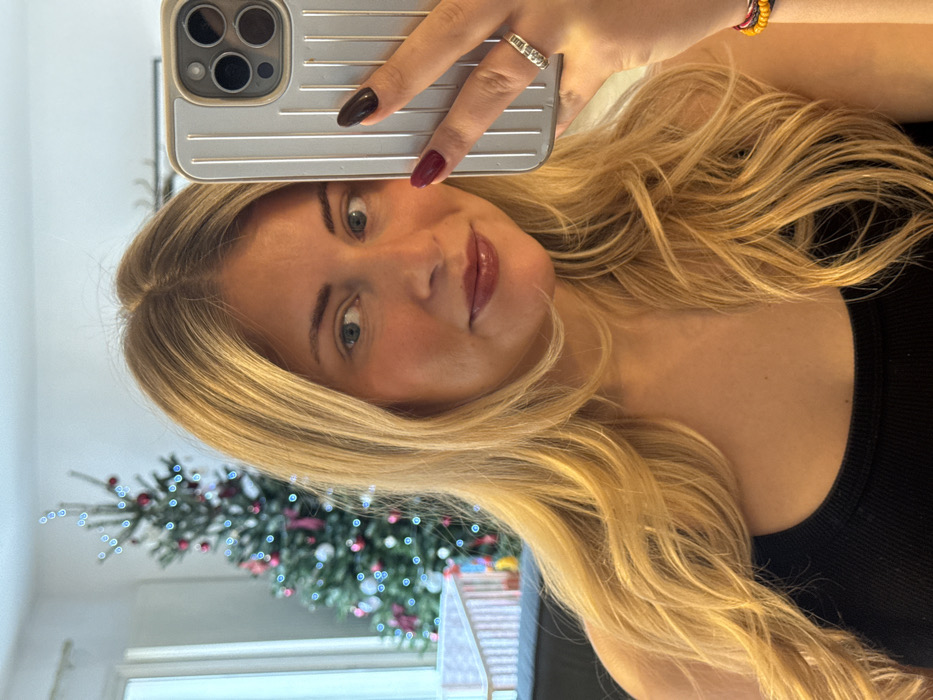 - "A fair-skinned female, estimated to be in her late 20s to early 40s, with long, center-parted blonde hair, blue eyes, and dark red lipstick, is depicted in a mirror selfie" by FM-OZmdD3, licensed under CC BY 4.0