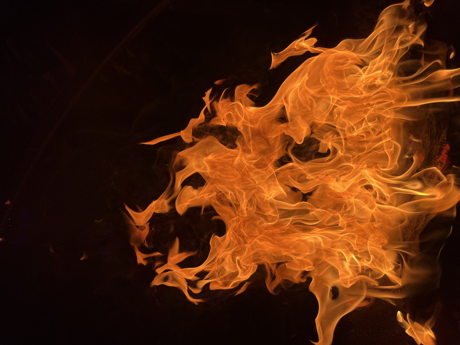 - "A vibrant, orange flame engulfs the right side of the frame against a black backdrop" by FM-x69p23, licensed under CC BY 4.0