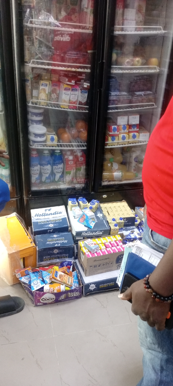 This image depicts an indoor commercial establishment, likely a convenience store or supermarket, located in Sani Mai Nagge, Nigeria