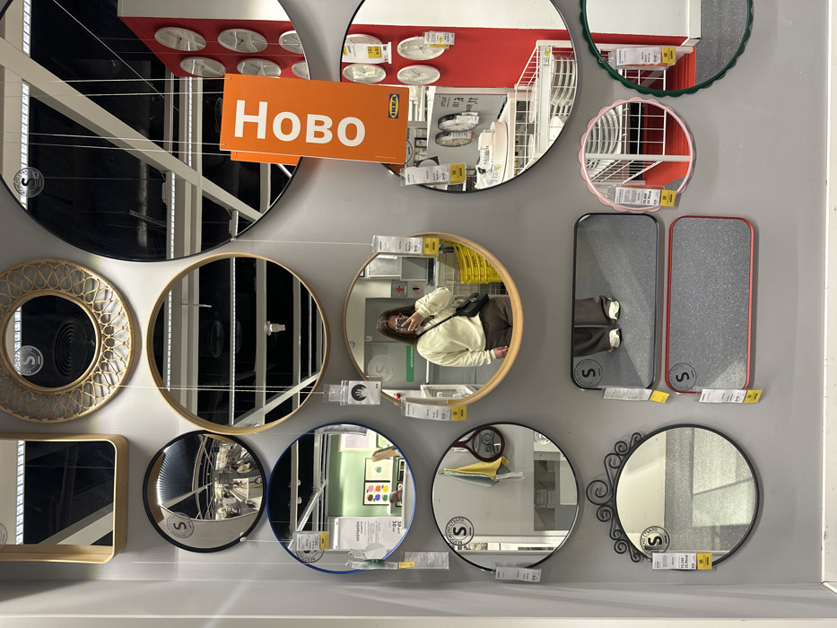 - "The image depicts an interior scene within an IKEA store located in Varna, Bulgaria, showcasing a wall display of assorted mirrors" by FM-U3eL23, licensed under CC BY 4.0