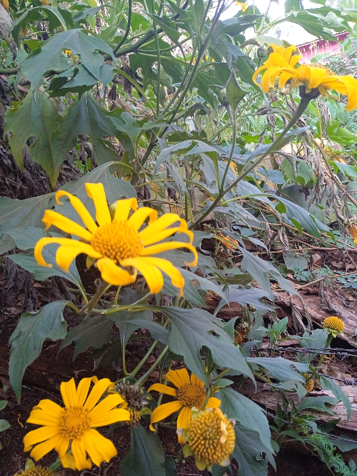 - "The scene depicts a dense patch of Tithonia diversifolia (Mexican sunflower) plants in an outdoor environment within the city of Embu, Kenya" by FM-MJcro2, licensed under CC BY 4.0
