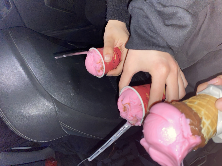 - "Three containers of pink ice cream are held by two hands" by FM-U9GOy1, licensed under CC BY 4.0