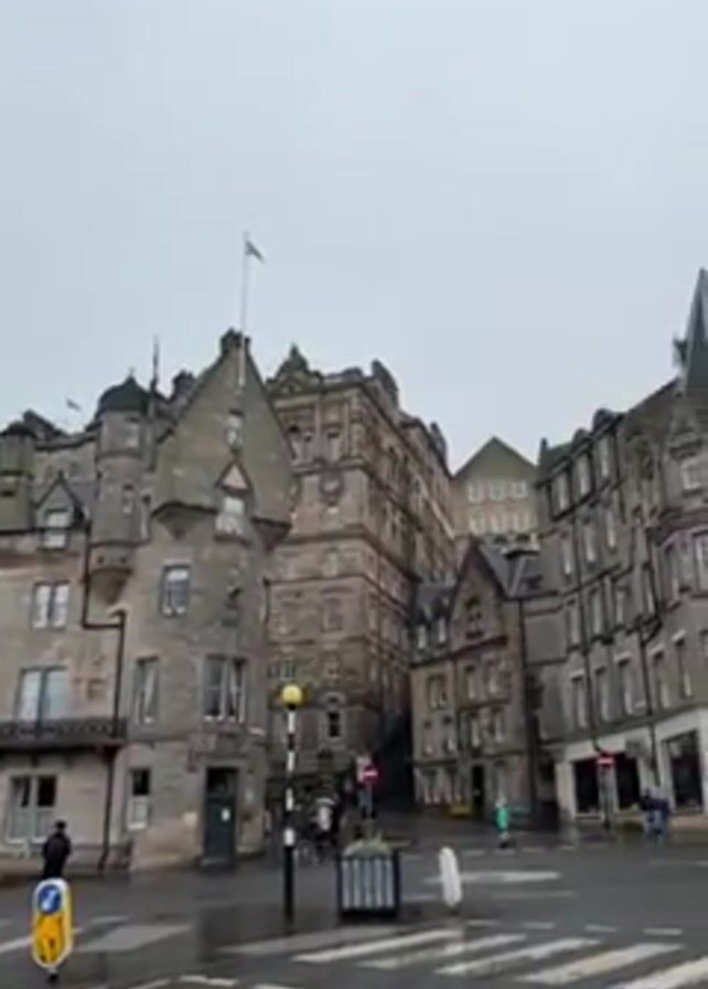 street corner in what appears to be a European city, likely Edinburgh