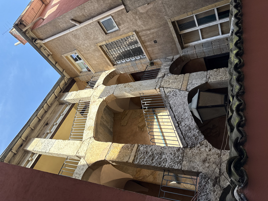 - "The image presents an upward-angled view into a multi-level historic internal courtyard, or traboule, located in the Vieux Lyon district of Lyon, France" by FM-BCfsB2, licensed under CC BY 4.0