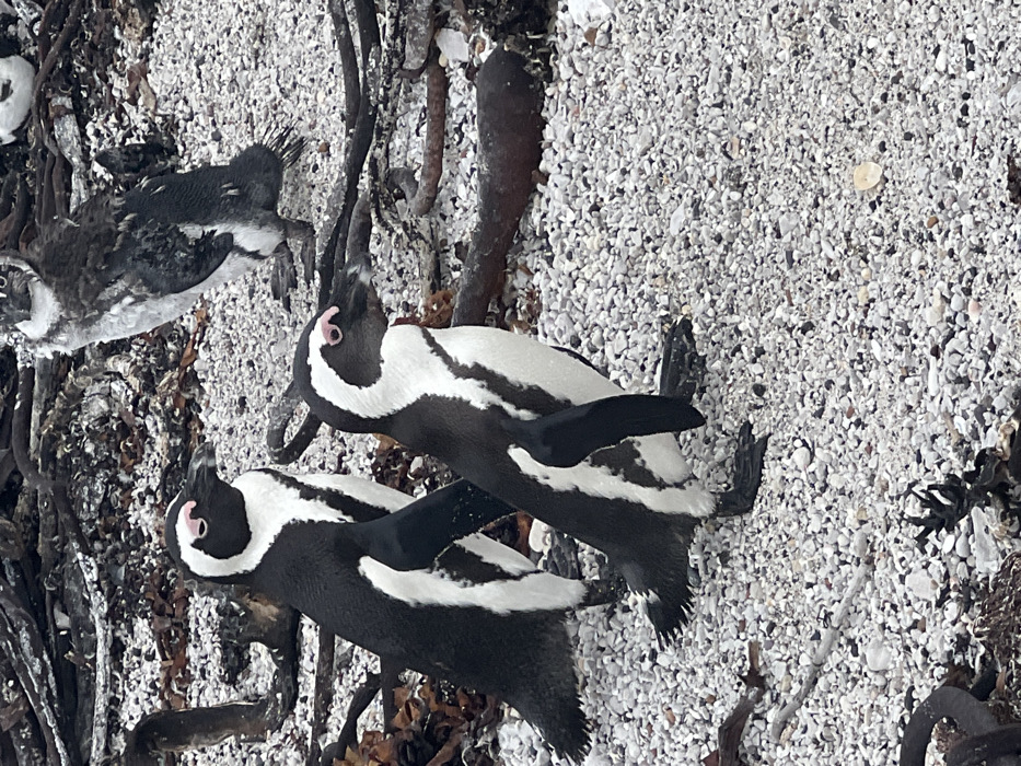 - "Two adult African penguins preen each other on a pebble beach, surrounded by dried seaweed" by FM-uxGmh2, licensed under CC BY 4.0