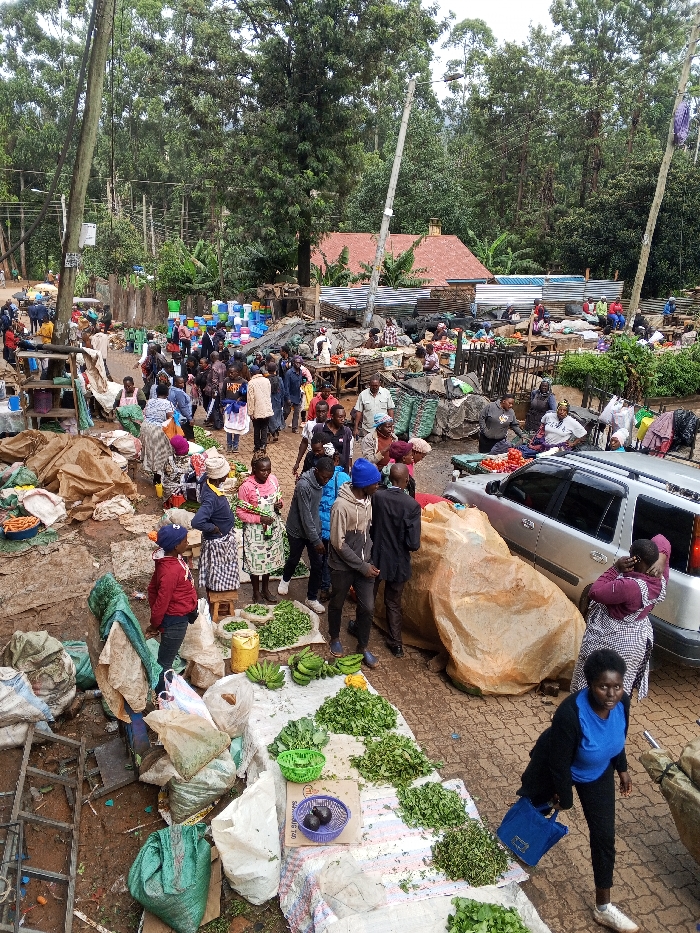 The image captures a crowded outdoor market scene located within Kisii Central ward, Kenya