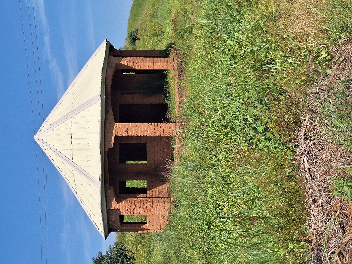 - "In Madakiya, Nigeria, an octagonal, open-sided structure with unplastered reddish-brown brick walls and a light-colored, corrugated metal pyramidal roof is positioned on a slight elevation" by FM-NK8jh1, licensed under CC BY 4.0