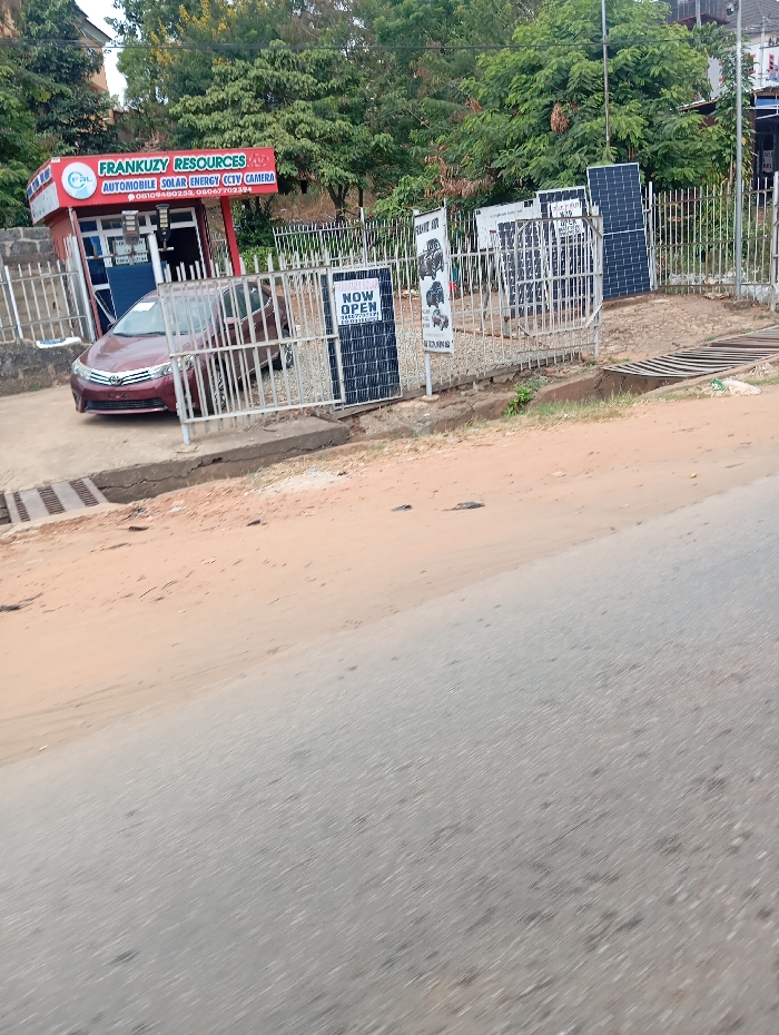 The image displays a commercial property, "FRANKUZY RESOURCES," situated in Onitsha, Nigeria