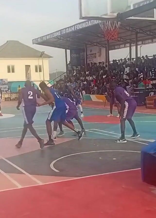 Certainly! Here's a concise description of the video: The video shows a basketball game taking place on an outdoor court