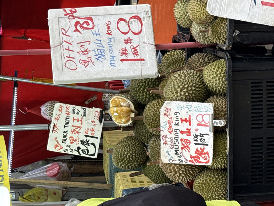 - "Durian fruits, including Musang King and Black Thom varieties, are displayed for sale" by FM-WqKVS2, licensed under CC BY 4.0