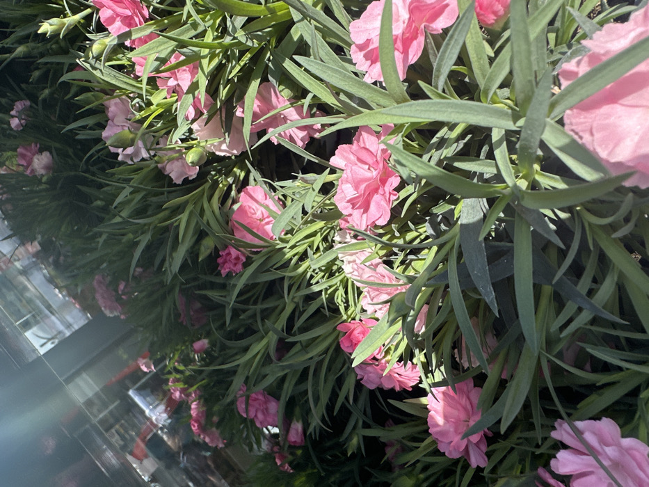 - "The image displays a dense arrangement of numerous pink flowering plants, identified as Dianthus cultivars or similar, consistent with a retail or nursery setting" by FM-f6bQw2, licensed under CC BY 4.0