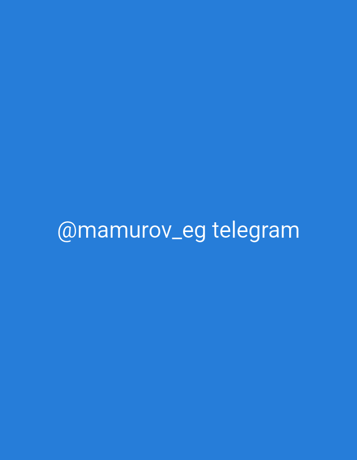 The image displays a solid blue background, serving as the sole environmental element. Centered horizontally on this blue field, white text reads "@mamurov_eg telegram." No individuals, distinct subjects, physical objects, actions, or interactions are present within the visual frame. The scene is a digital graphic with no discernible physical location depicted. Per request, the conceptual location is the city of Unknown, Unknown.