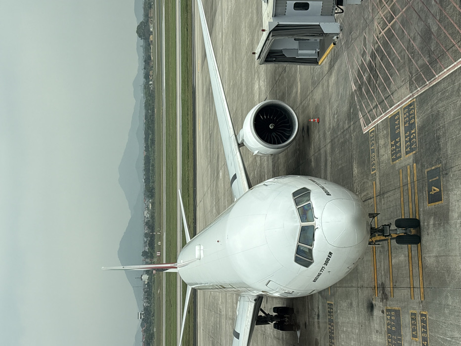 - "A white Boeing 777-300ER passenger aircraft is depicted parked at an airport gate, viewed from an elevated perspective" by FM-Ju5AS2, licensed under CC BY 4.0