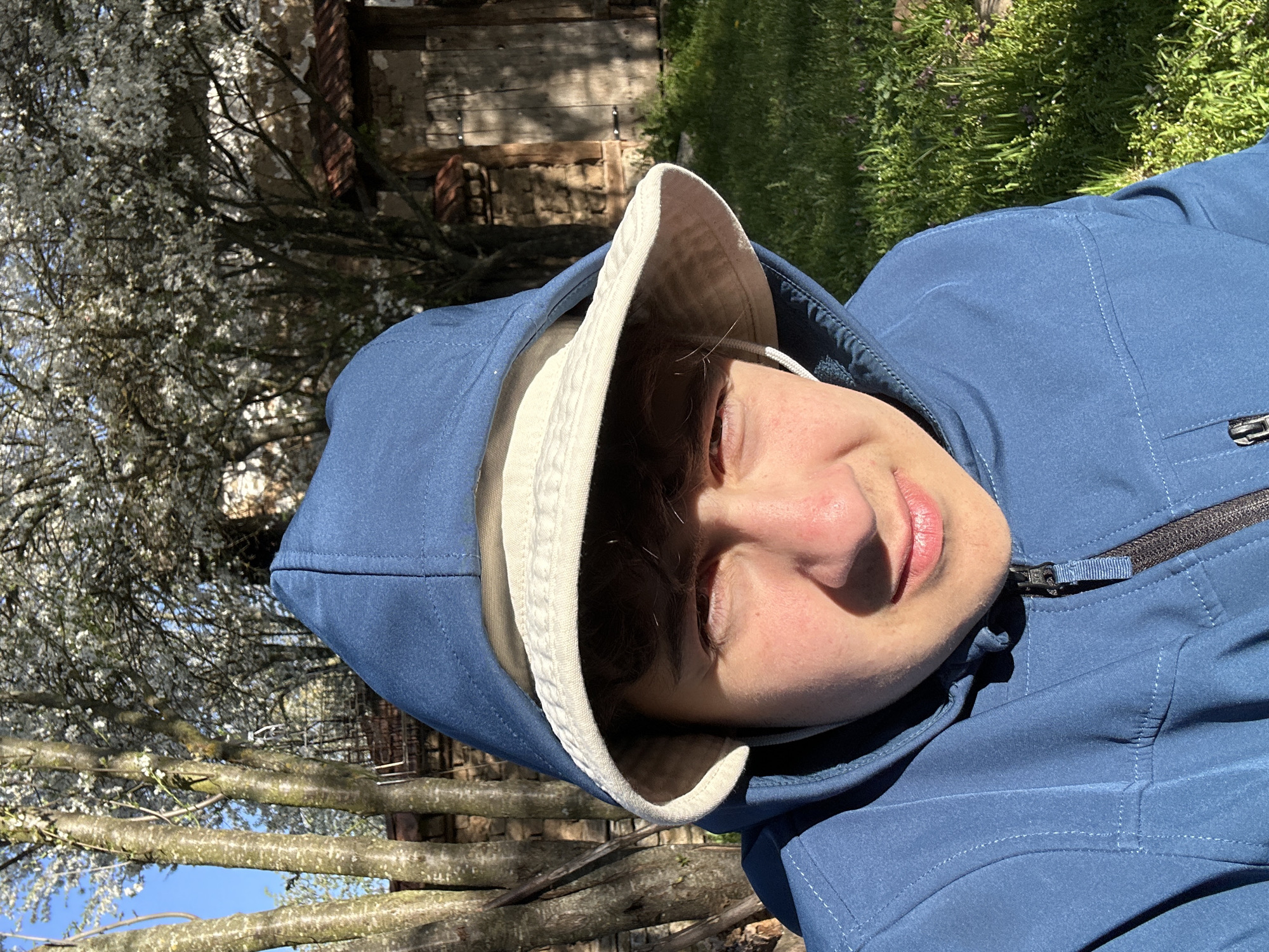 - "A person wearing a blue hooded jacket and a light-colored sun hat is seen in a close-up, angled shot" by FM-drSRN2, licensed under CC BY 4.0